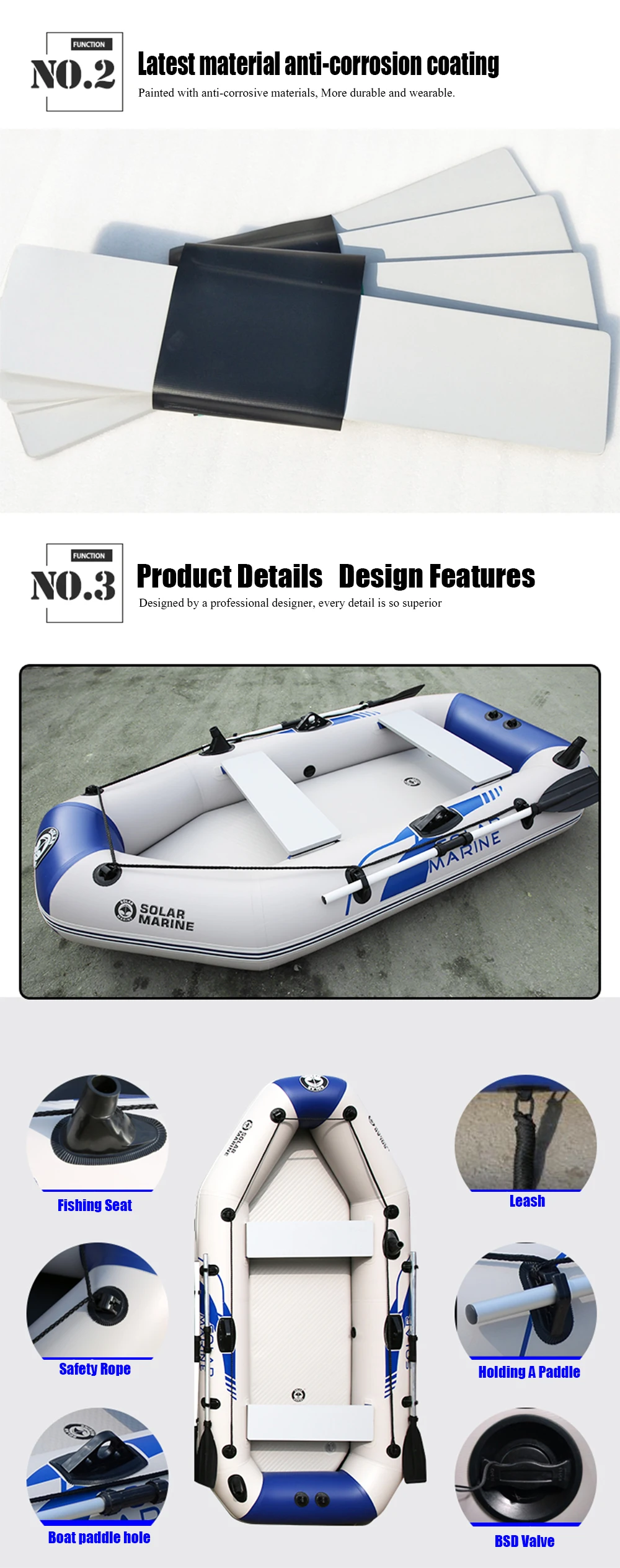 This PVC Inflatable Kayak Fishing Boat is designed for adventure seekers, families, and anglers who want reliable performance on the water. Its durable slats bottom provides excellent support and stability, allowing users to stand or move comfortably while paddling or fishing. Ranging from 1.75m to 3.3m, it accommodates 1 to 6 people, making it suitable for solo trips or group outings. The heavy-duty PVC construction resists punctures and abrasion, extending the lifespan of the boat even with frequent use. Lightweight and easy to inflate, it packs down efficiently for car travel or storage. Its streamlined body delivers smooth rowing and strong tracking on lakes, rivers, and calm coastal zones. Secure tie-down points allow you to bring essential gear along safely. The boat’s reinforced sides enhance buoyancy and safety in various water conditions. Perfect for vacations, camping, or weekend water sports, this inflatable kayak offers comfort, stability, and versatility for every trip.