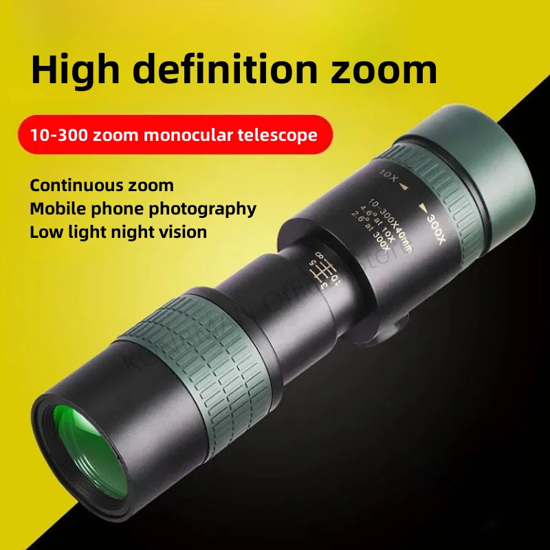 The 10–300X Zoom High Definition Monocular Telescope delivers powerful magnification and clear viewing for outdoor enthusiasts and professionals. Designed with a high-definition optical system, it provides sharp, detailed images across a wide zoom range for long-distance observation.