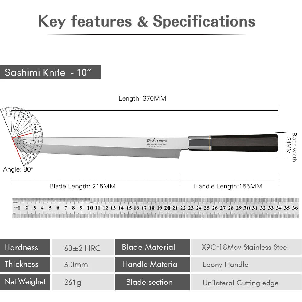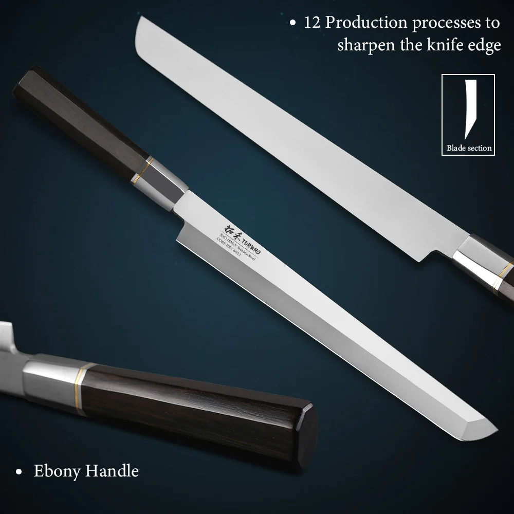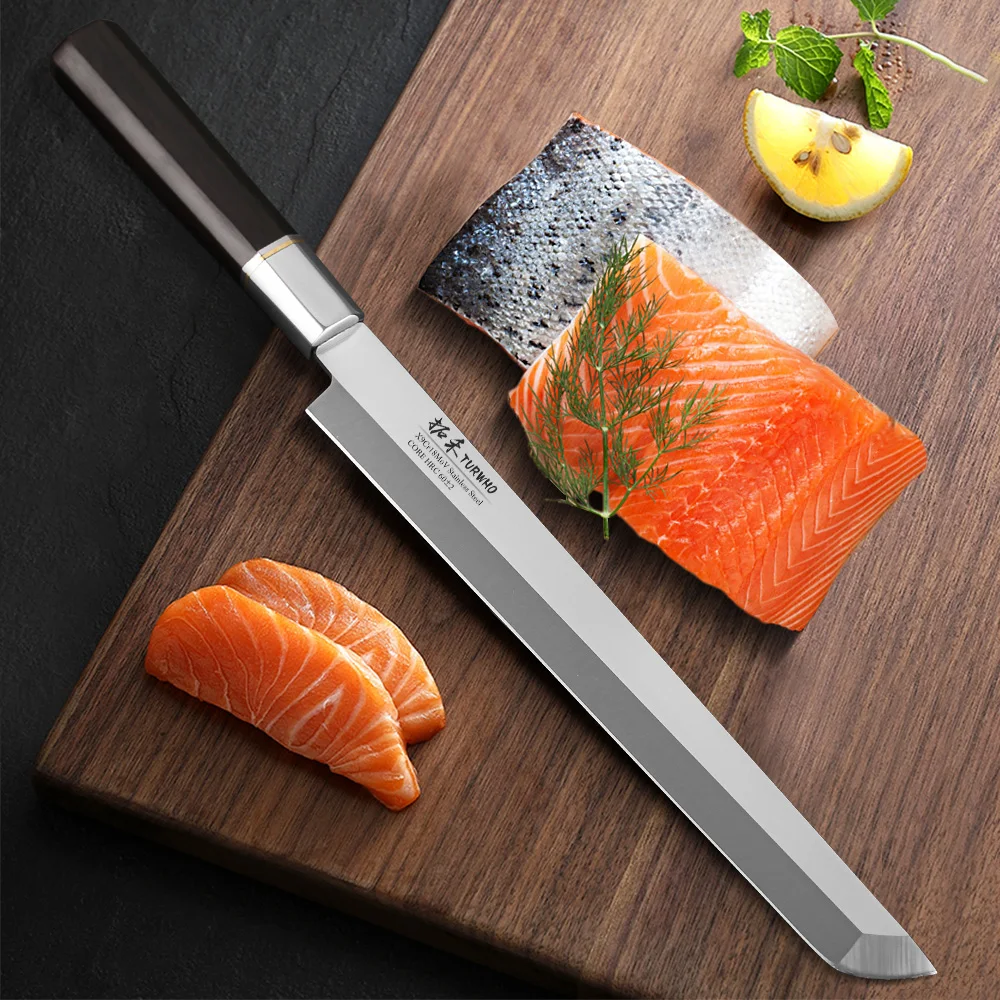 Ideal for preparing sashimi, sushi, and salmon, the knife enables effortless single-stroke slicing without tearing or crushing delicate ingredients. The balanced construction ensures stability and control, helping chefs achieve consistent, restaurant-quality results.