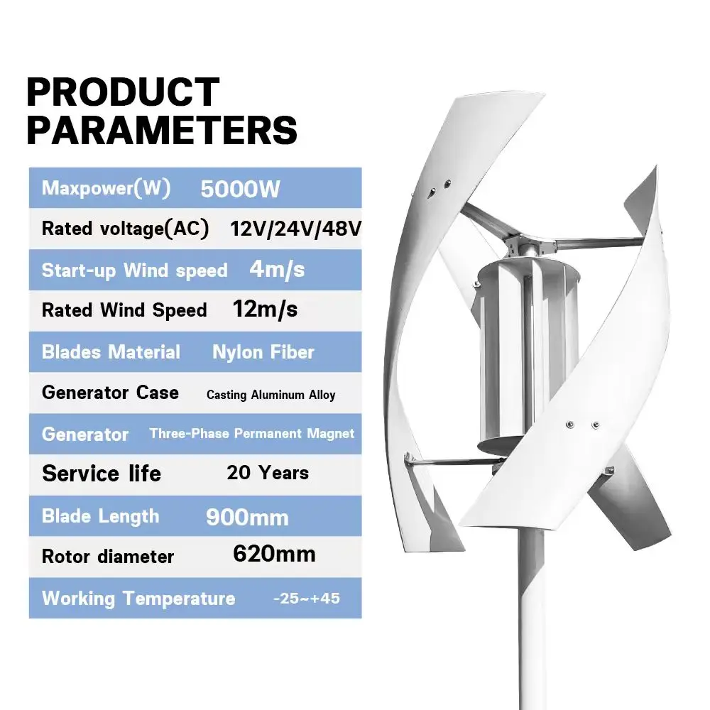 This Three-Phase 5000W (5kW) Wind Turbine Generator is designed to harness clean, renewable energy for home or off-grid applications. Featuring three aerodynamic blades, it efficiently converts wind power into stable electricity. Compatible with 12V and 24V systems, it integrates easily with battery setups and energy storage systems. The included MPPT controller maximizes power output by tracking optimal wind conditions. Durable materials and engineering ensure long-lasting performance in harsh weather conditions. Ideal for residential, agricultural, or remote energy solutions, it provides a sustainable alternative to grid power. The turbine operates quietly while delivering reliable electricity for homes, cabins, or workshops. Easy to install and maintain, it supports eco-friendly, cost-effective energy generation. Generate free energy and reduce your reliance on traditional power sources. This wind turbine is perfect for anyone seeking sustainable and efficient home energy solutions.