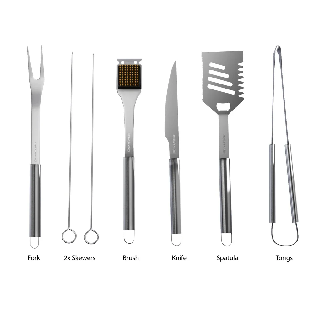 Upgrade your grilling experience with this 7-Piece BBQ Grill Tool Kit, crafted from durable stainless steel for long-lasting performance and easy cleaning. This complete set includes spatula, tongs, fork, knife, basting brush, skewers, and a convenient storage case, giving you everything you need for backyard barbecues, camping trips, and tailgating.