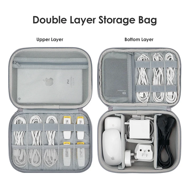Featuring a double-layer internal structure, this organizer provides separate compartments to prevent tangling and damage while maximizing storage efficiency. Elastic straps and mesh pockets securely hold accessories in place, making it easy to find what you need quickly.