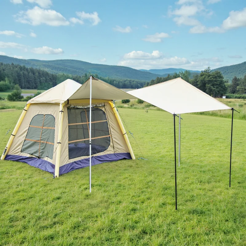 This Inflatable Tent is perfect for families or groups of 4–6 people, offering a large, comfortable area for camping, hiking, or travel. Designed with automatic opening technology, it inflates quickly for effortless setup in minutes. The waterproof fabric and reinforced seams provide reliable protection against rain and damp conditions. Durable materials and windproof design ensure stability in various weather conditions. Spacious interior allows for comfortable sleeping, gear storage, and family activities. Lightweight and portable, it is easy to transport in backpacks, vehicles, or camping kits. Ventilation panels maintain airflow and reduce condensation inside the tent. Ideal for outdoor adventures, festivals, or glamping, it combines convenience with durability. Easy to fold and pack, it saves time and effort while maximizing comfort. Enjoy stress-free outdoor living with this reliable, large-capacity inflatable camping tent.