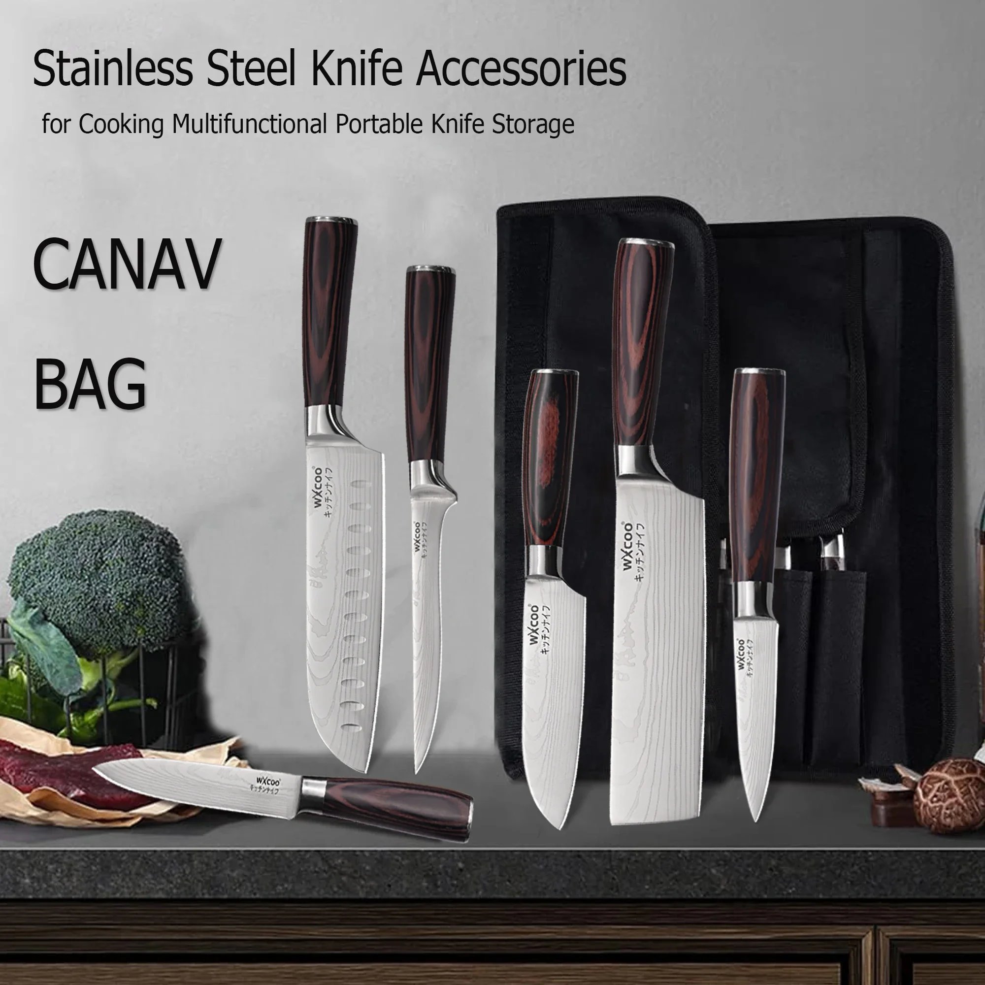 Ergonomic handles provide a secure and comfortable grip, making extended meal preparation easier and safer. The included knife bag allows organized storage, portability, and protection for your knives, whether at home or on culinary travels. Perfect for professional kitchens, home cooking, and gifting, this set combines elegance, functionality, and durability in one premium package.