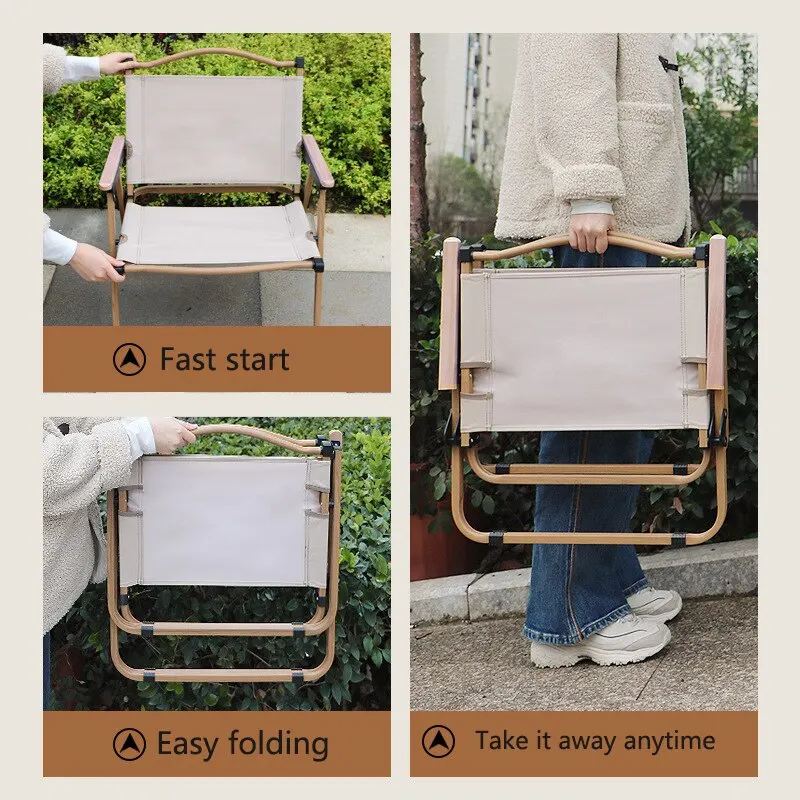 Relax anywhere with this Portable Camping Chair, built from strong yet lightweight aluminum alloy and finished with a stylish wood grain look. Designed for outdoor comfort, it folds quickly for effortless setup, transport, and storage—perfect for camping trips, picnics, beach days, fishing, tailgating, or backyard lounging.